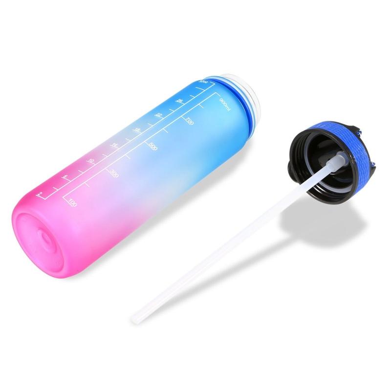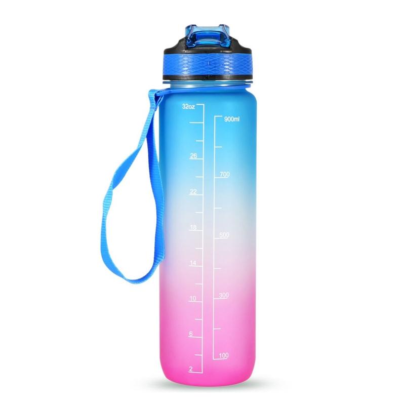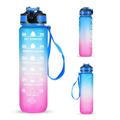 Sportovní láhev na vodu o objemu 1 l s časomírou Džbán na vodu Nepropustná konvice na pití pro kancelář, školu a kempování (BPA Free) - modrá/fialová