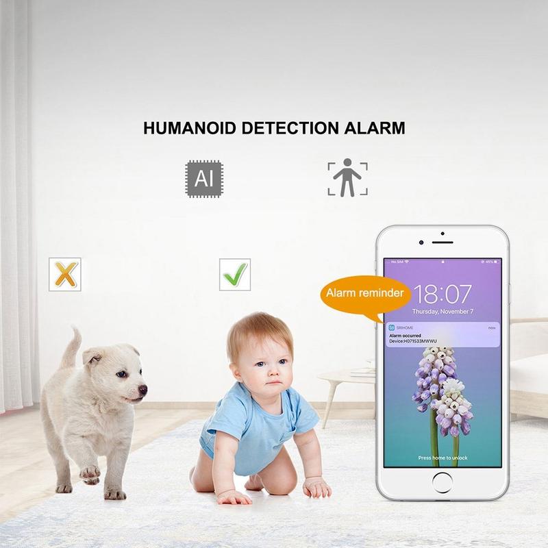 - AI humanoid detection + auto-tracking, push alerts on motion, adjustable sensitivity