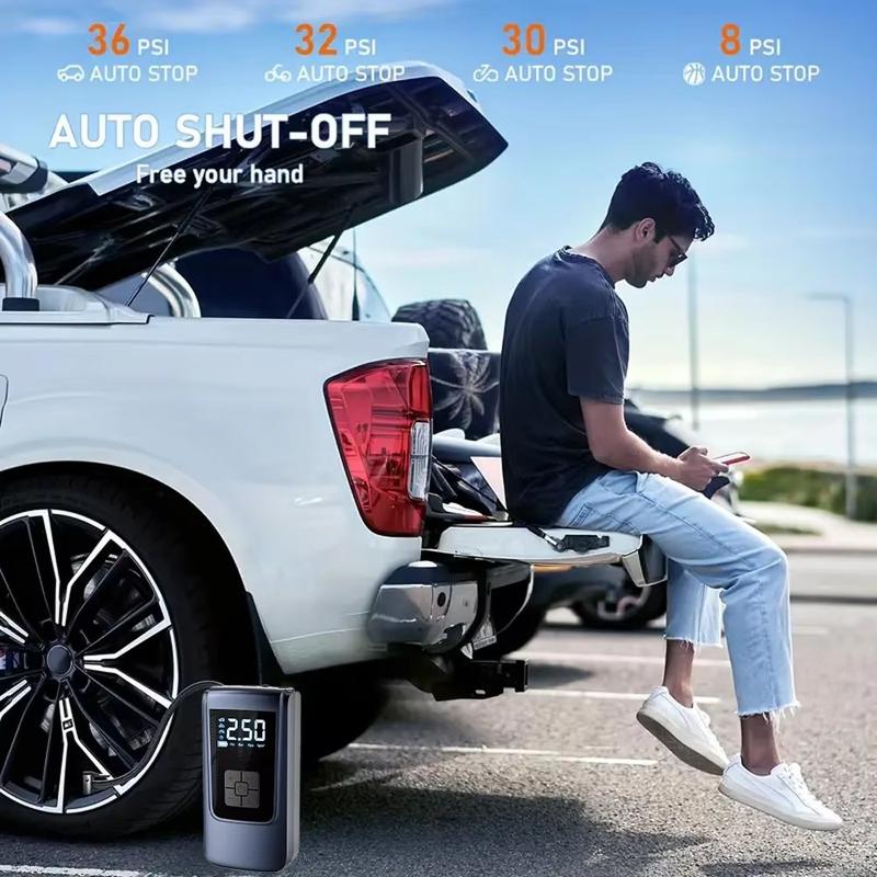 Portable tire inflators are popular because correct tire pressure can help improve driving comfort, tire wear, and overall vehicle efficiency. Digital pressure displays have become especially common because they make it easier to inflate more accurately than with older analogue designs. Compact air compressors are also widely used beyond car tires, as nozzle accessories can make them useful for bicycles and smaller inflatables. Many drivers keep one in the boot as part of their everyday car emergency kit.