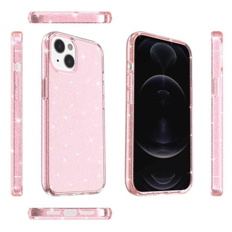 Stylové hybridní pouzdro řady Glitter pro iPhone 15 – Růžový