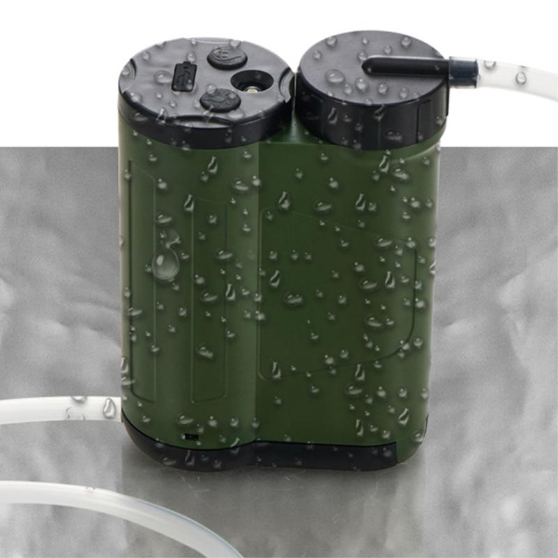 The Survival Electric Water Filter / Water Purification Tool with Emergency LED Light is a must-have for outdoor activities, travel, and emergency situations. This lightweight and portable tool is designed to provide safe and functional water purification on the go. It features an automatic pump system that eliminates the need for manual pressure filtration, delivering clean and safe drinking water quickly and efficiently.