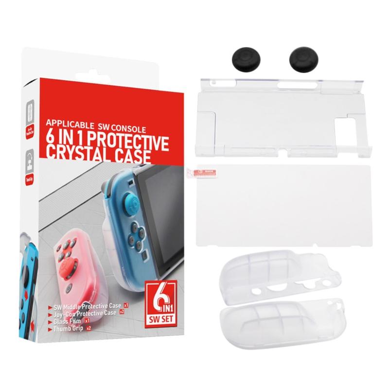 SW369 Sada průhledných pouzder 6 v 1 pro Nintendo Switch , skořepinový kryt proti poškrábání s ochranou obrazovky a krytkami na uchopení