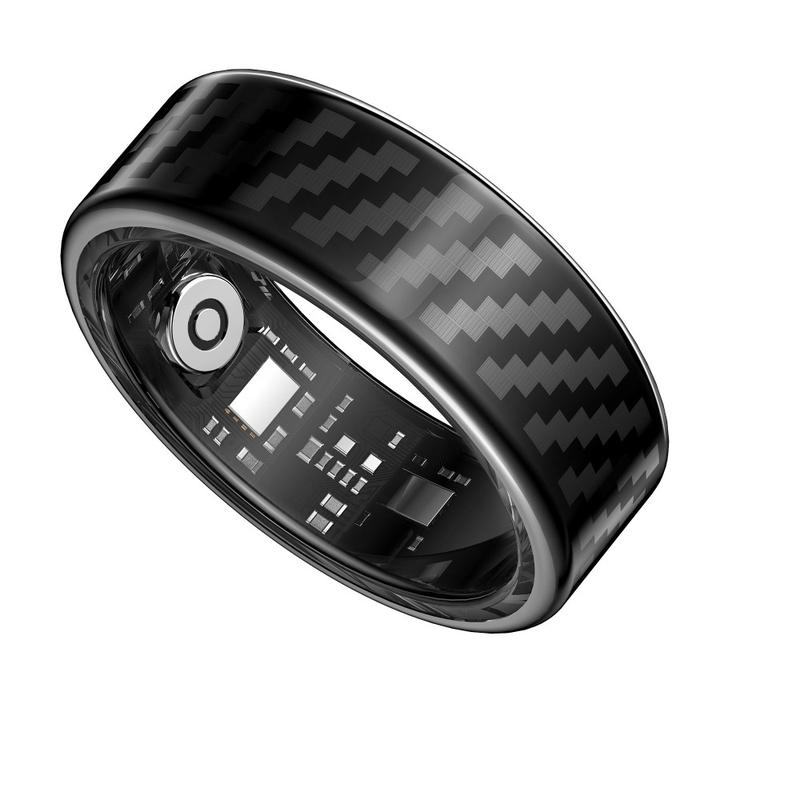 SY02 Carbon Fiber-Pattern Smart Ring - Sleep, Blood Oxygen & Heart-Rate Tracker with Wireless Charging Case