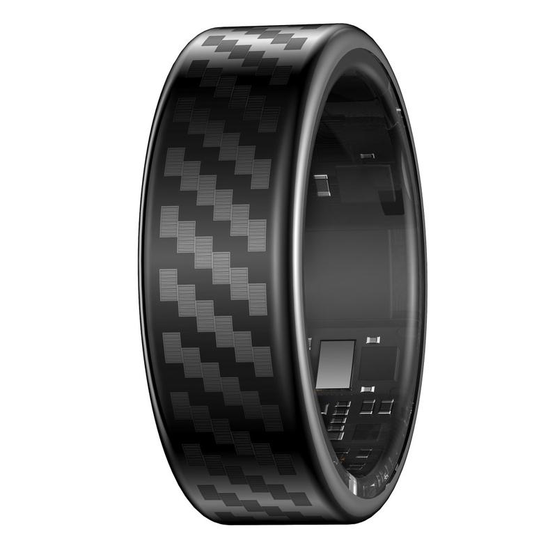 SY02 Carbon Fiber-Pattern Smart Ring - Sleep, Blood Oxygen & Heart-Rate Tracker with Wireless Charging Case