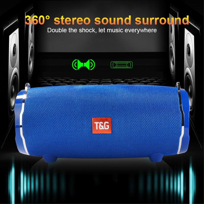 T&G TG187 Portable Wireless Music Speaker Outdoor Waterproof Bluetooth FM TF Bass Stereo Subwoofer with Shoulder Strap (CE Certificated)