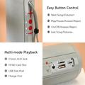 Přijetí pokročilého dekódovacího čipu Bluetooth pro podporu párování a přehrávání hudby se zařízeními Bluetooth, jako jsou mobilní telefony, tablety, televizory atd.; přenosová vzdálenost Bluetooth je větší než 10 metrů
