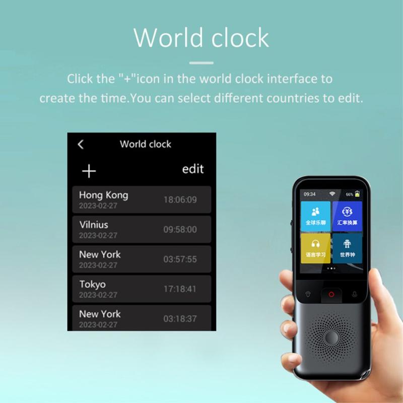 It also supports picture translation in 43 languages/offline translation in 10 languages/real-time translation/world clock/record translator/clear voice