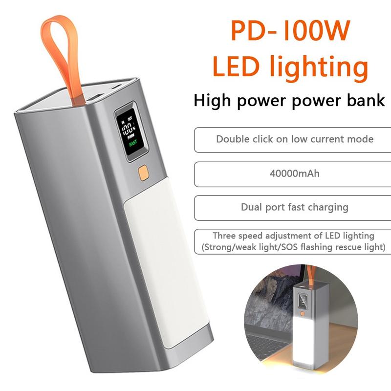 T133LP 40000mAh PD 100W Fast Charging Power Bank Phone Laptop Charger External Battery with LED Light