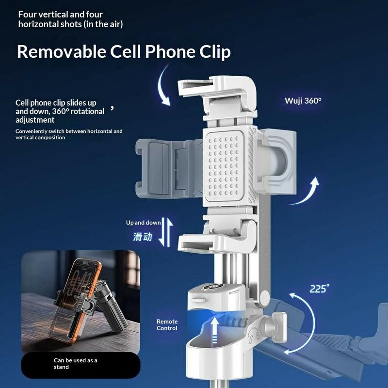 Its auto-open tripod legs provide quick stability when placed down, while the extendable design and rotating phone holder make it easy to switch between different shooting angles and formats. The included Bluetooth remote helps you take photos hands-free, and the dual square fill lights add extra brightness for selfies, video calls, and recordings.