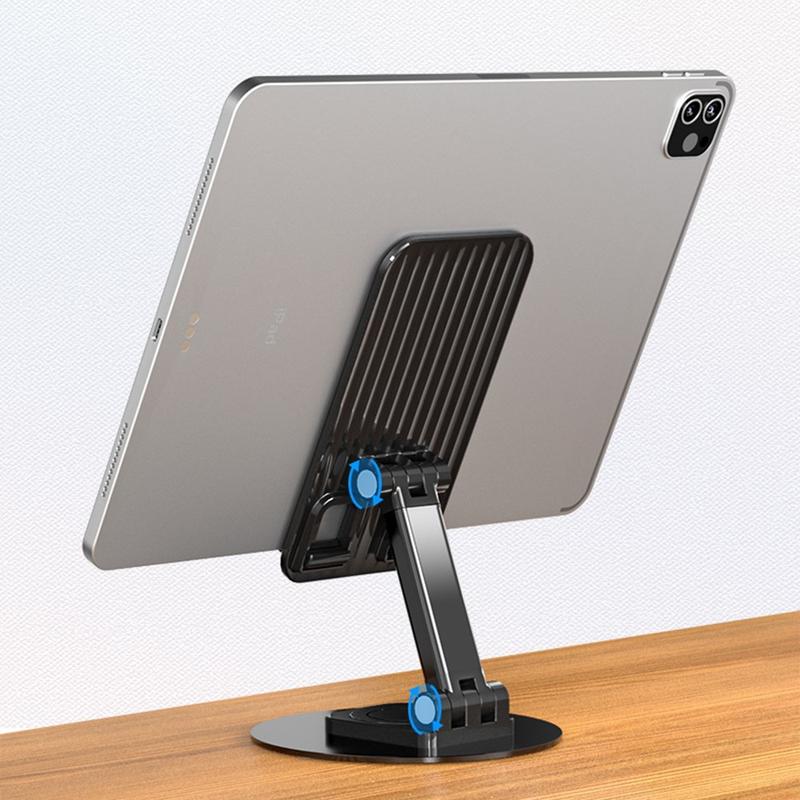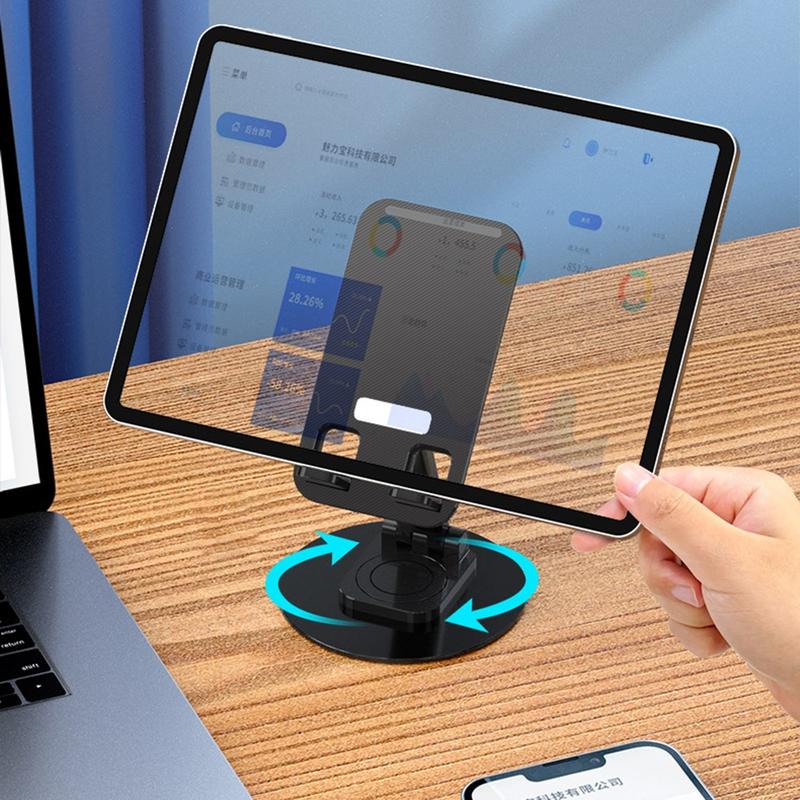 T9 Desktop Phone Stand Folding 360° Rotating Tablet Holder for Live Streaming, Online Teaching - White