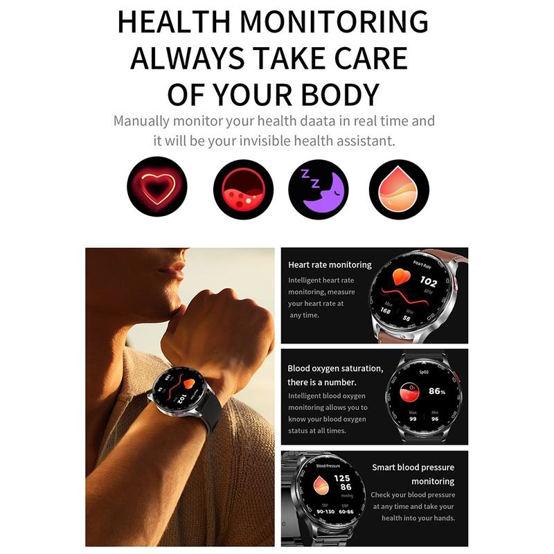 Enjoy hands free calls, immersive music and round the clock health tracking in one compact device. The T97 pairs a high resolution 1.39 inch display with pop out Bluetooth earbuds that recharge inside the watch, giving you true all in one convenience for work, workouts and travel.
