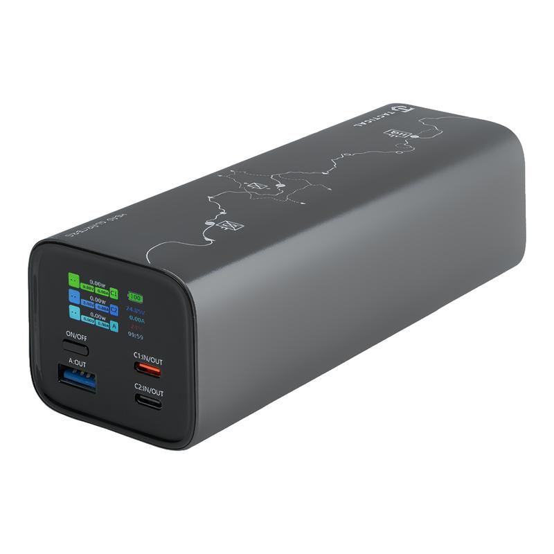 With 2 USB-C ports and 1 USB-A port, it offers flexible multi-device charging in a rugged aluminum alloy body. The integrated TFT display shows battery level, charging status, and current input or output power, so you always have a clear overview. Its durable tactical-inspired design and large power reserve make it a practical choice for users who need reliable charging away from a wall socket.
