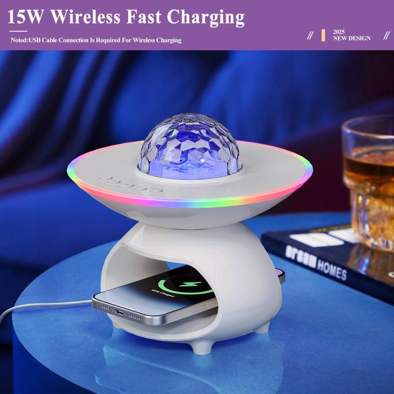 TCSP-001-C 4-in-1 Star-Projector Lamp - 15 W Wireless Charger, Bluetooth 5.0 Speaker & RGB Mood Light