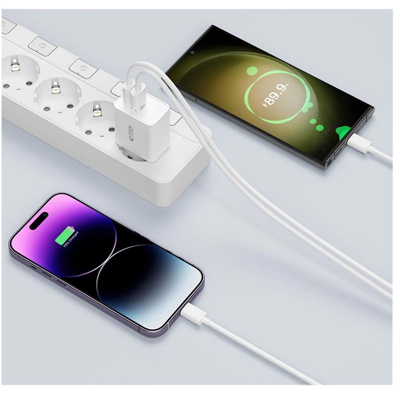 The Tech-Protect C35W is a universal wall charger designed with two USB-C ports that allows you to recharge two devices simultaneously, without the risk of overloads, or damaging the battery. It features a Power Delivery (PD) protocol of 35W, a smart management system that automatically adapts the voltage to suit specific devices.