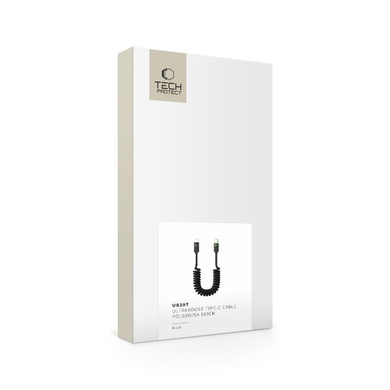 Tech-Protect UB20T UltraBoost Retractable USB-C Cable for Fast Charging - Power Delivery 100W/5A, 180cm