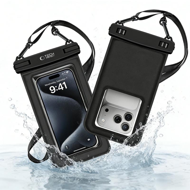 Protect your phone during water activities with the Tech-Protect UWC7, a universal waterproof case designed for smartphones up to 6.9 inches. With IPX8 protection up to 20m depth, it is a practical choice for swimming, kayaking, beach trips, and other outdoor adventures where your phone may be exposed to water.