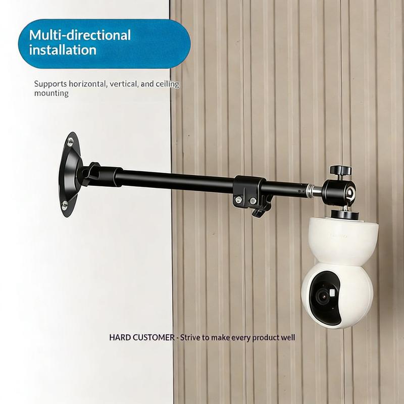 The 360 degree rotation security camera holder is a telescopic bracket designed to provide flexible and stable positioning for surveillance cameras. Suitable for both indoor and outdoor use, it allows accurate placement of cameras to achieve optimal monitoring coverage in various environments.