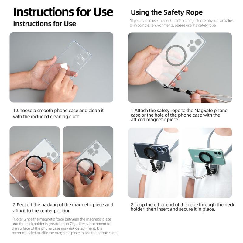 Vnější strana držáku na krk je vyrobena z vysoce elastického a pružného silikonového materiálu, měkkého a příjemného na dotek, bez tlaku při nošení. Vnitřní část je vyrobena ze slitiny zinku a materiálu z nerezové oceli, bez obav z deformace, prasknutí a zlomení