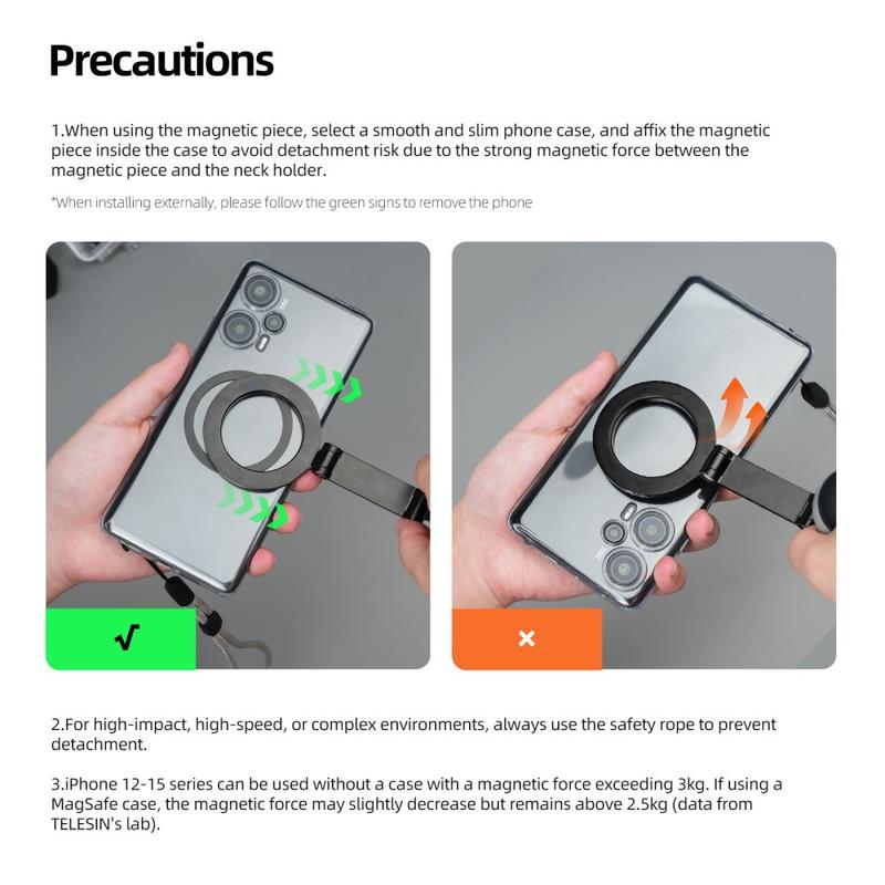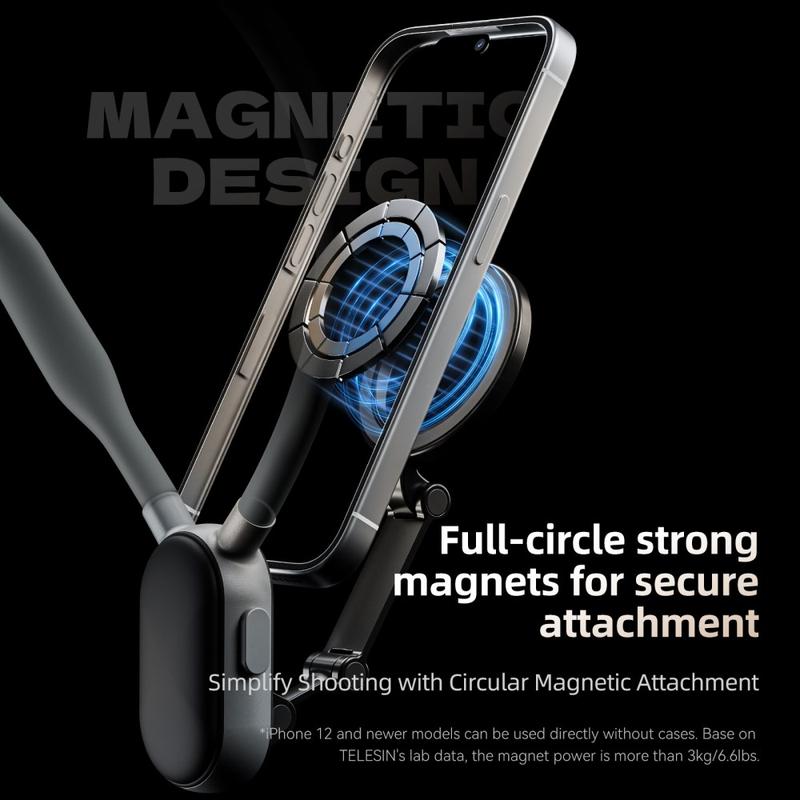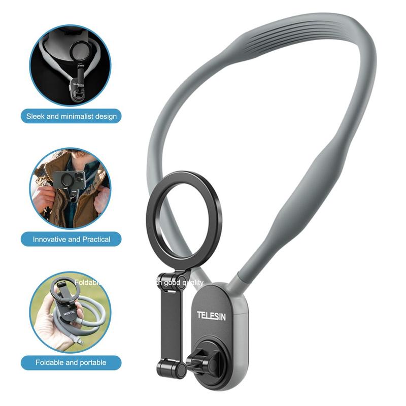 TELESIN MNM-001 pro iPhone 12 / 13 / 14 / 15/ 16 Silikonový držák na krk Magnetická selfie tyč Držák telefonu na krk - šedý