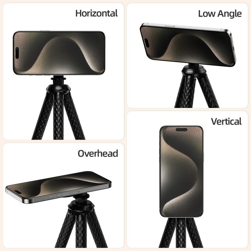 - Flexible octopus-style legs with silicone-wrapped aluminum for secure wrapping and stable support