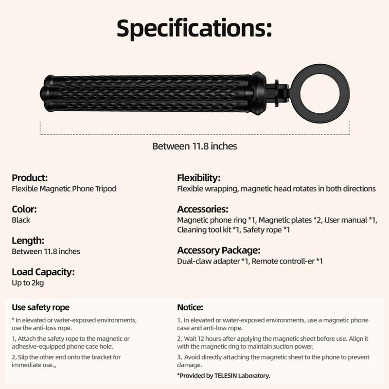 TELESIN P3-FM-02 Octopus MagSafe Phone Tripod with Adjustable Angle and 1/4" Camera Mount