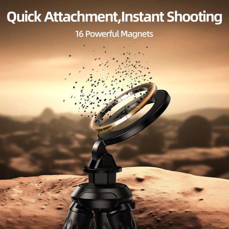- Two-in-one mounting: magnetic quick mount for phones plus 1/4" thread for cameras and lights