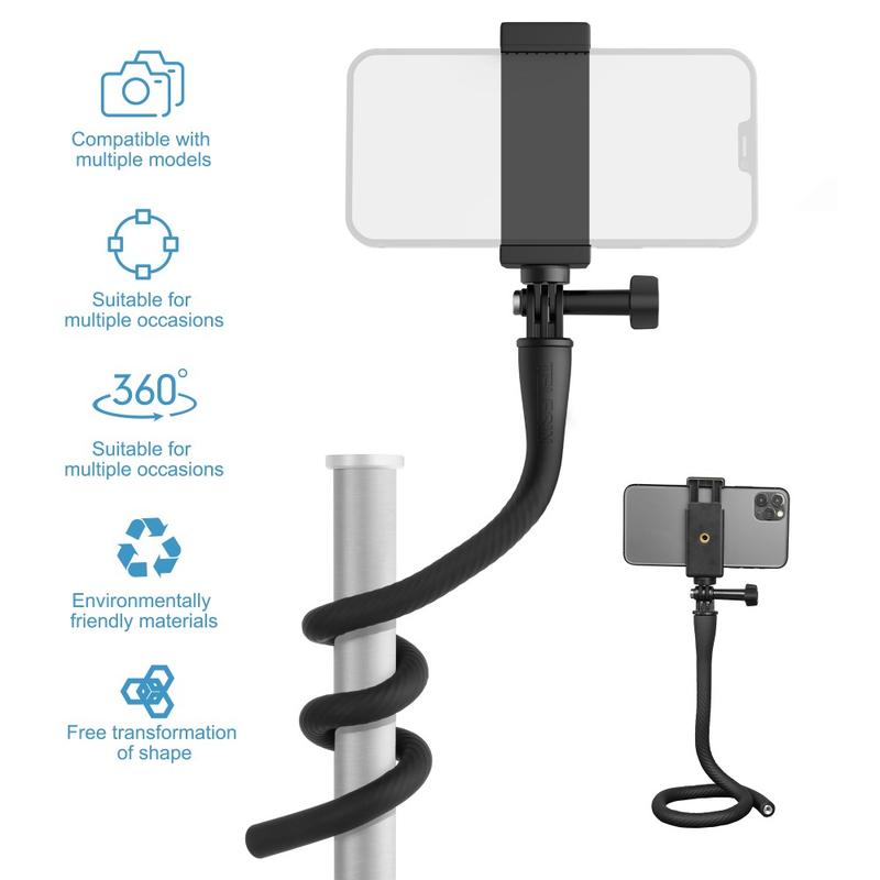 The Telesin TE-FM-003 features a bendable, wrap-around design with a built-in flexible aluminum strip, allowing you to secure it to poles, rails, handlebars, branches, or other objects for creative shooting angles.