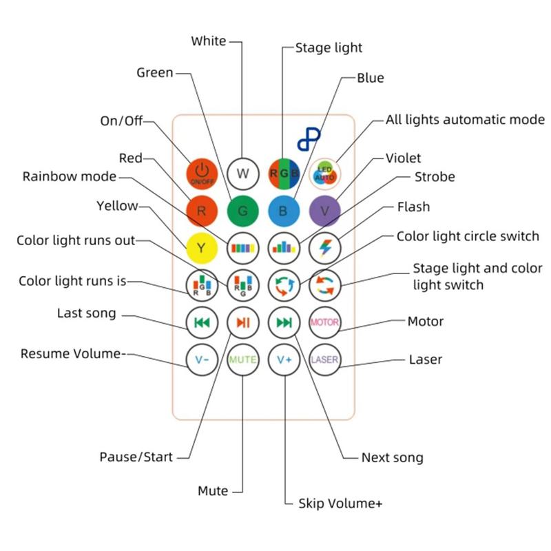 - Color-changing RGB effects and star projection for creating party, romantic or relaxing ambience