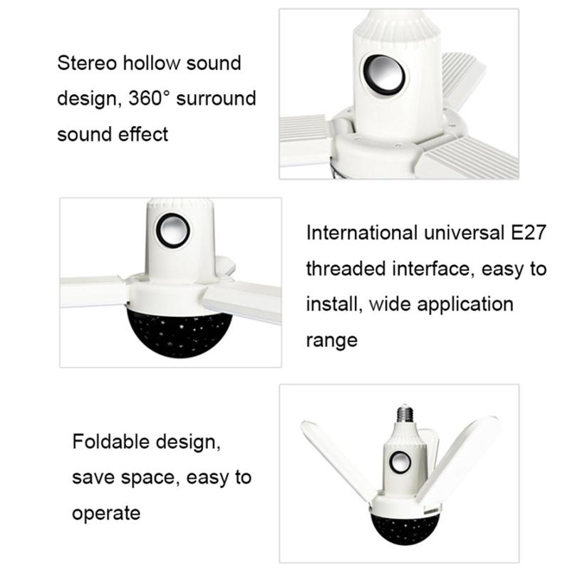 This star projector lamp delivers exceptional versatility by combining RGB lighting, wireless audio and a foldable design. Its E27 compatibility ensures quick installation, while the powerful illumination and remote-controlled customization make it suitable for any environment. Whether you want a party light, a relaxing ambience lamp or a compact portable lighting solution, this product elevates the atmosphere instantly.