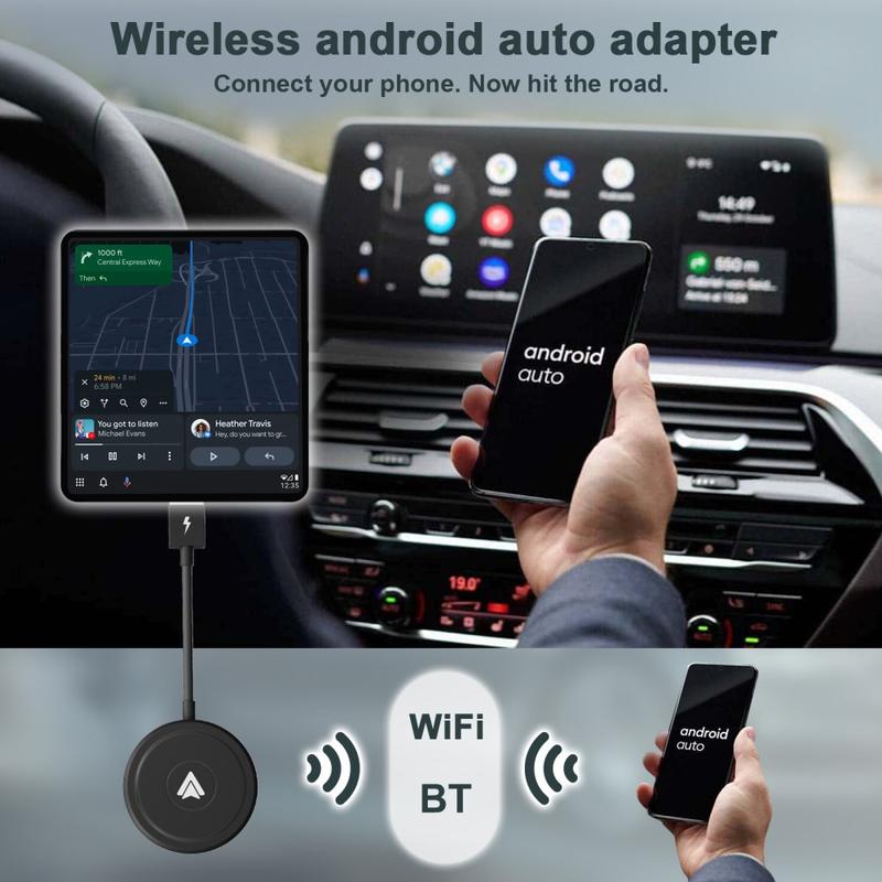 Bezdrátový adaptér Android Auto je vhodný pro automobily s kabelovým systémem Android Auto a stačí jej připojit pouze prostřednictvím komunikačního portu USB nebo komunikace TYPE C automobilu. Řidič se může dotknout ovládacího panelu automobilu a synchronizovat online mapy, hlasového asistenta Google, telefonní hovory, hudbu atd. z mobilního telefonu do automobilu, stejně jako se dotkne mobilního telefonu, a ovládat provoz funkcí mobilního telefonu na ovládacím panelu automobilu.