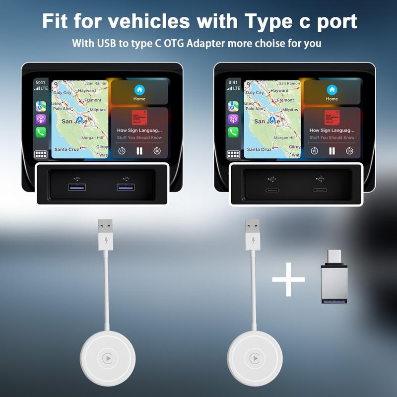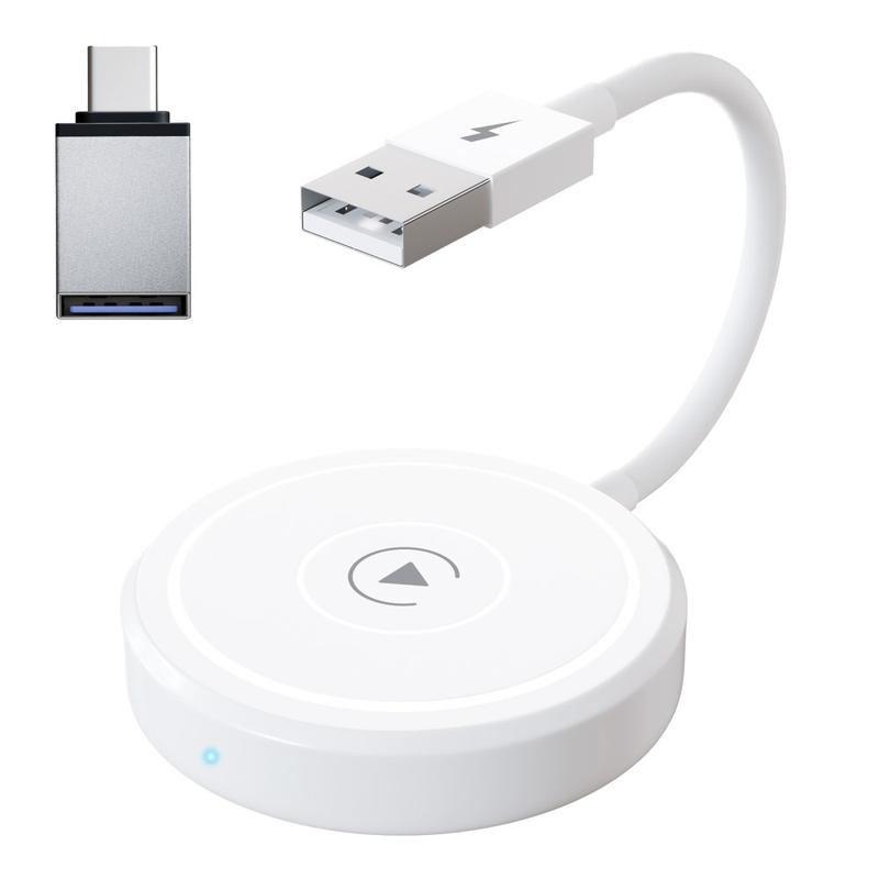 THT-020-5 Bezdrátový adaptér CarPlay AI BOX CarPlay Dongle Převodník z kabelového na bezdrátový CarPlay pro kabelové CarPlay v autech - bílý