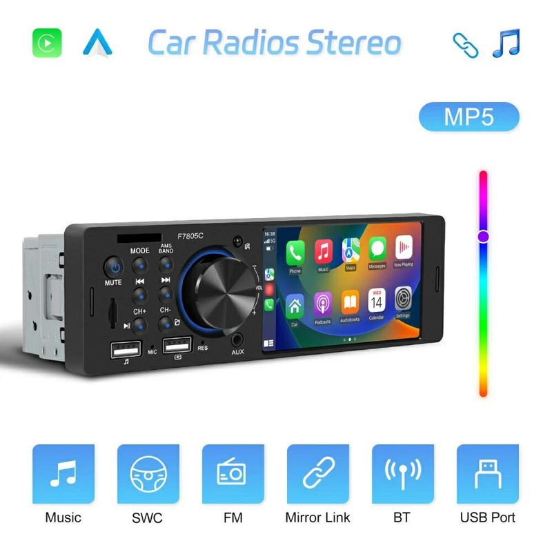 Transform an ageing dashboard into a smart-phone hub with this slim F7805C head-unit. The 10.4 cm (4.1 in) capacitive display handles wired CarPlay, Android Auto and Mirror Link, so you can follow maps, take calls and stream playlists without fumbling with your phone. Bluetooth 5.1 keeps conversations crisp, while a 7-colour back-light lets you match factory illumination. Designed for 12 V systems and weighing under 0.4 kg, it slips into most single-DIN slots with minimal wiring.