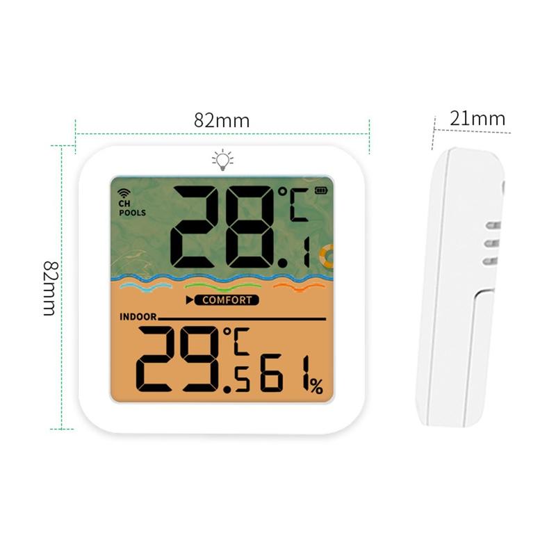 Monitor your pool or spa temperature more easily with the TS-PL07 wireless pool thermometer. Designed for convenient indoor and outdoor use, this floating digital thermometer features a waterproof transmitter and a separate indoor receiver, so you can check water temperature without going outside.