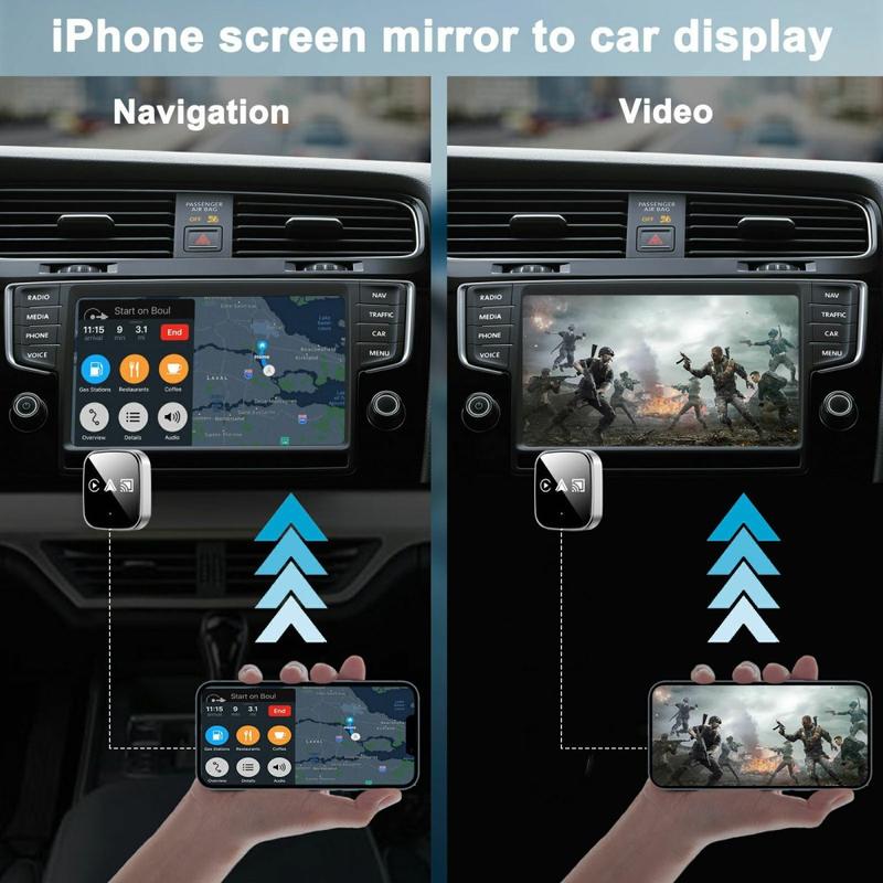 Wireless CarPlay and Android Auto adapters typically use Bluetooth for initial pairing and Wi-Fi for the high-bandwidth data connection, which is why dual-band Wi-Fi can improve stability. Many factory systems support full touchscreen and steering wheel controls through the adapter, so the driving experience stays familiar—just without the cable.