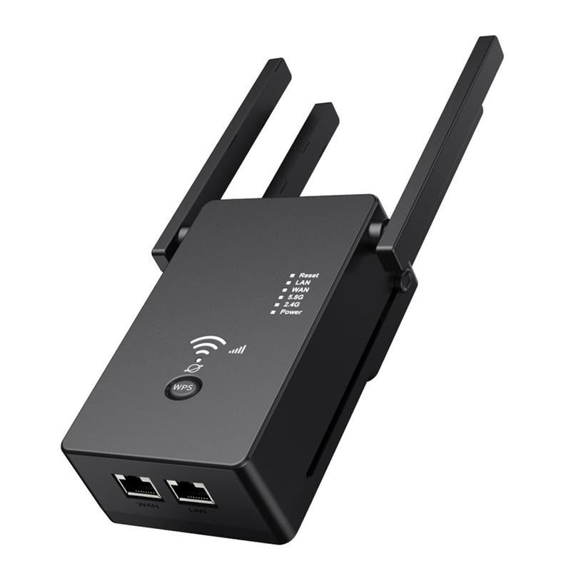 - Dual-band WiFi extender with speeds up to 1200 Mbps