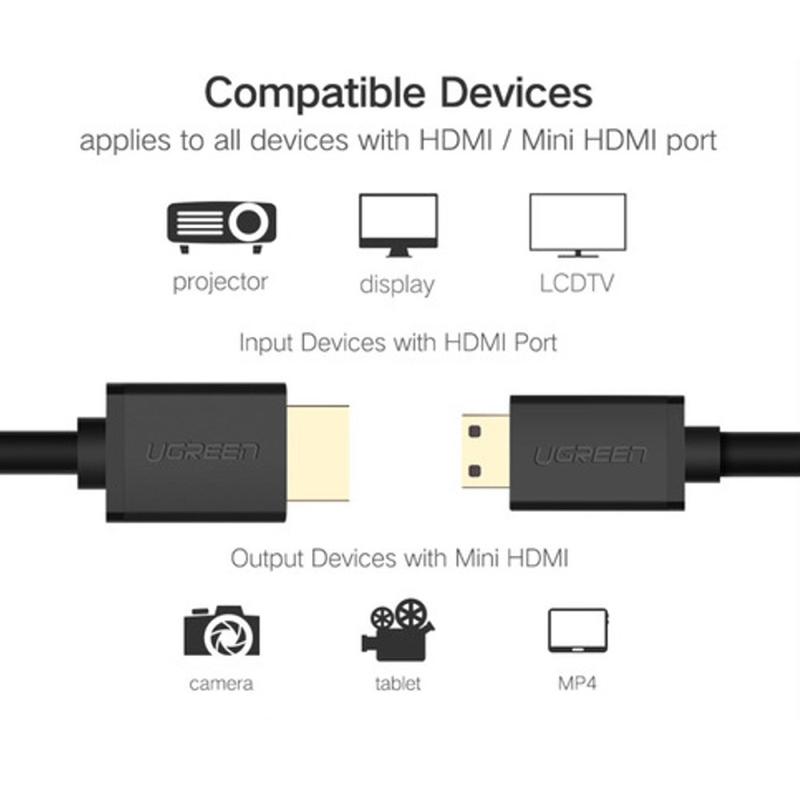 - Mini HDMI (Type C, male) to HDMI (Type A, male) for wide device compatibility