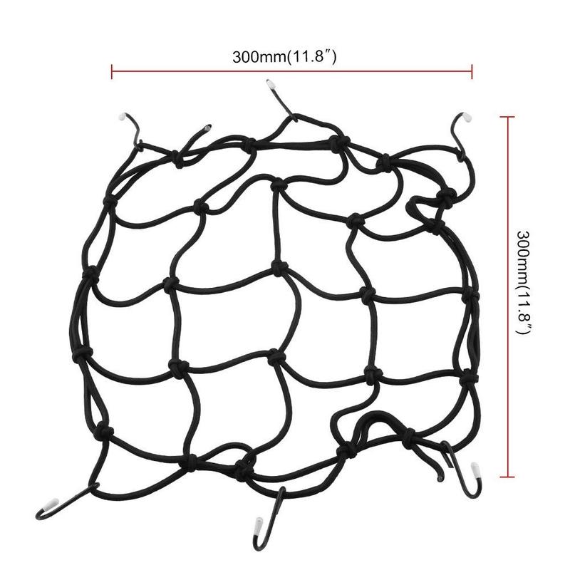 Travel securely and keep your belongings firmly in place with this Universal Elastic Cargo Net. Measuring 30x30cm, this flexible storage net effortlessly holds helmets, jackets, bags, and gear while you're on the go. Featuring six sturdy metal hooks, it ensures your items stay safe even during bumpy rides, preventing accidental loss and keeping your journey hassle-free.