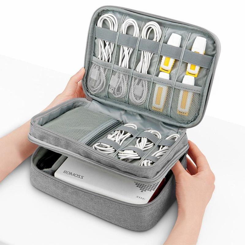 Large capacity for organizing electronics accessories such as USB cable cord, flash drive, wall charger, memory card, hard drive, power bank, earbuds, camera, etc