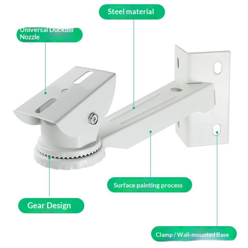 The CCTV camera pole clamp mount bracket is designed to provide a stable and adaptable mounting solution for security cameras in a wide range of environments. With support for wall, corner and pole installation, it allows flexible placement to achieve optimal surveillance coverage.