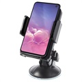- Výkonná základna přísavky bezpečně a bezpečně namontuje držák na čelní sklo vašeho automobilu nebo na jiném rovném povrchu, jako je například plocha