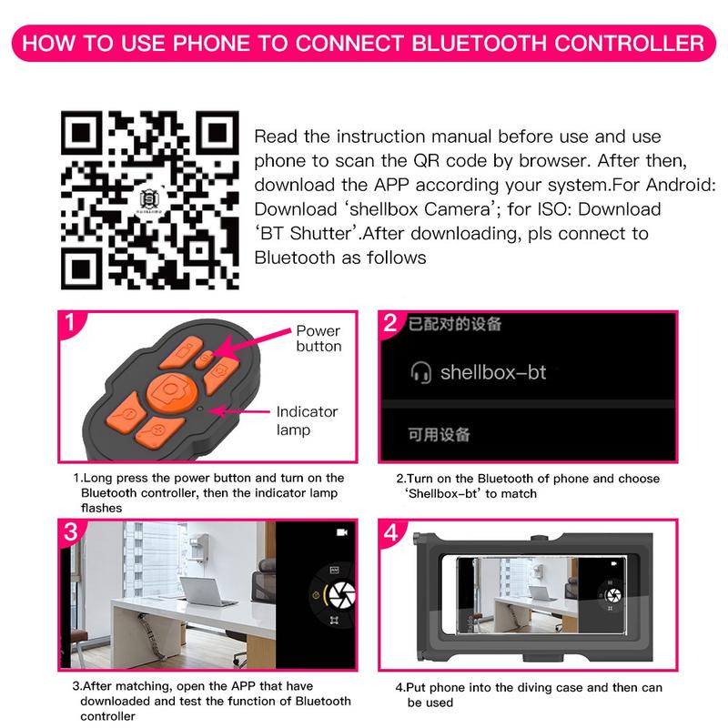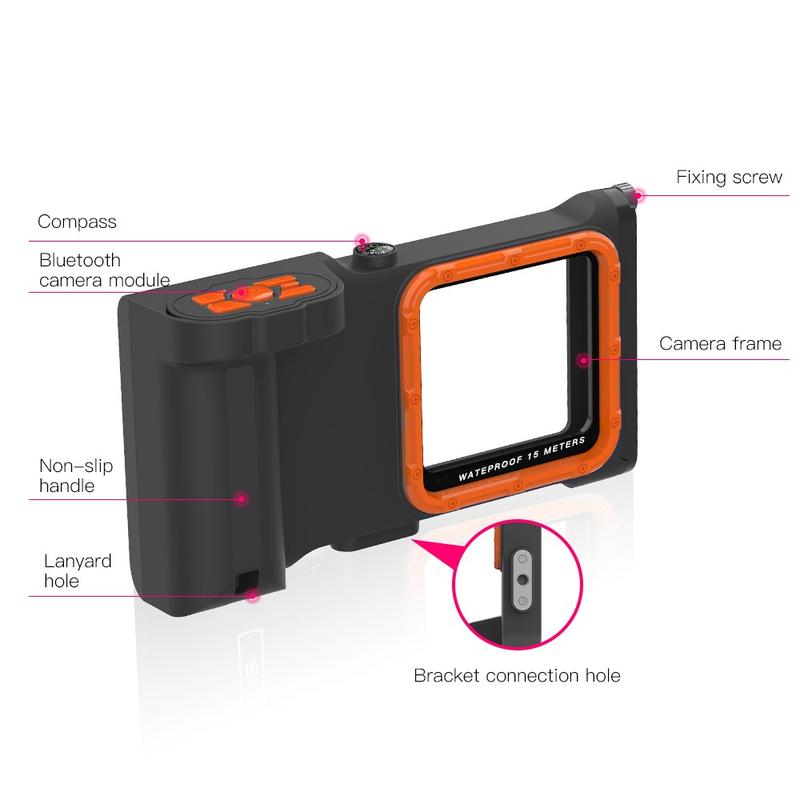 The third generation diving case uses Bluetooth connection to take photos or videos. This means you can switch the front and rear cameras, you also can zoom in or out as you like