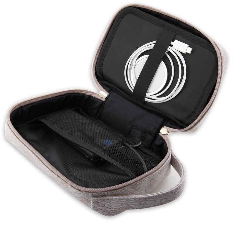 Univerzální brašna Guess Travel je ideálním společníkem na cesty pro každého, kdo hledá stylový a pohodlný způsob, jak přenášet veškeré příslušenství k telefonu, tabletu nebo notebooku. Taška je vyrobena z vysoce kvalitní EKO kůže a má jemně strukturovaný povrch zdobený ikonickým logem Guess. Uvnitř jsou dobře navržené kapsy, které poskytují dostatek prostoru pro nabíječky, powerbanky a napájecí kabely. Výrazným prvkem této tašky je výstup USB-A, který umožňuje připojit powerbanku a nabíjet telefon přímo z boku tašky. Díky čistému designu a smyslu pro styl je tato brašna ideální pro cestovatele, kteří si cení funkčnosti a módy.