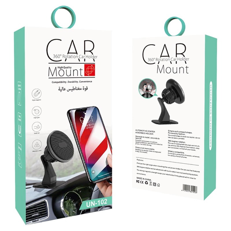 Držák magnetického vozu UN-102 je perfektním společníkem během dlouhých cest. Udrží váš smartphone pevně na místě, i když jezdí na drsných horských silnicích, díky čtyřem magnetům N50, které jsou vestavěné. Tento držák palubní desky má 360 stupňovou rotační hlavu, která vám pomůže najít nejvhodnější úhel pro prohlížení.