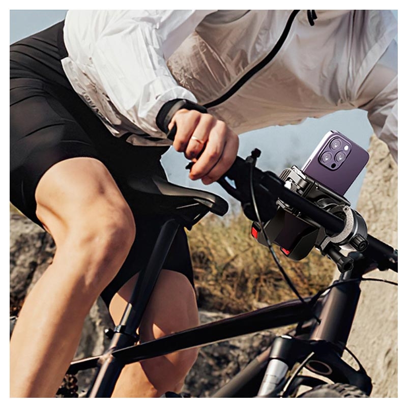 Upgradujte své nastavení na kole a zůstaňte ve spojení i při jízdě s tímto držákem telefonu na kolo Joyroom JR-ZS266. Tento držák na kolo Joyroom JR-ZS266 je ideální pro každého, kdo potřebuje navigovat při jízdě na kole, sledovat vzdálenost nebo údaje o kondici pomocí cyklistických aplikací, nebo chce mít svůj telefon jednoduše přístupný. Jeho bezpečné uchopení zajišťuje, že váš telefon zůstane na svém místě, a to i během hrbolaté jízdy nebo nerovného terénu.