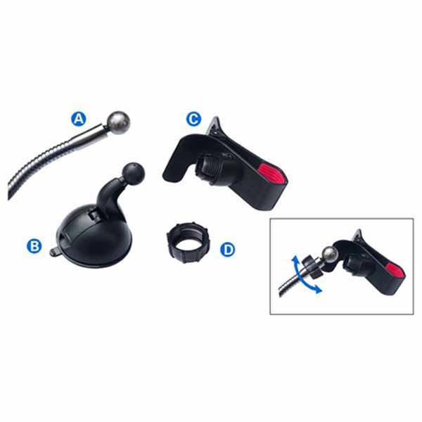 - Zahrnuje 3 díly: Dlouhý, flexibilní husí stranu s velkým kovovým klipem, držákem na plastové klipy v telefonu a stojanem přísavky