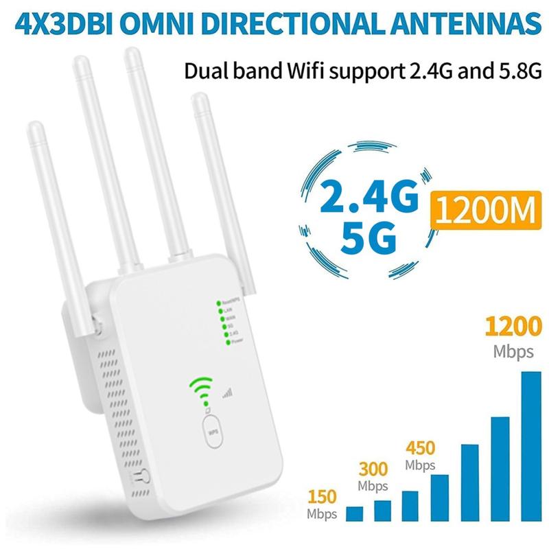 - Dual-band WiFi extender and router with up to 1200 Mbps speed