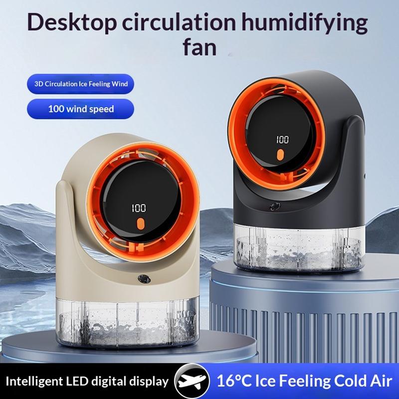 Stay cooler and more comfortable with this USB portable desktop mist fan, a practical 3-in-1 device that combines airflow, mist humidification, and air circulation in one compact design. With a visible 450ml water tank and adjustable wind settings, it is ideal for desks, bedside tables, home offices, and small rooms.