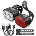 USB Rechargeable Bike Light Set IPX4 Bright Front Headlight and Rear LED Bicycle Light Accessories for Night Riding Cycling