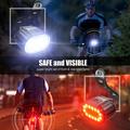 White headlight with 4 switchable lighting modes, and rear light has 6 lighting modes to select