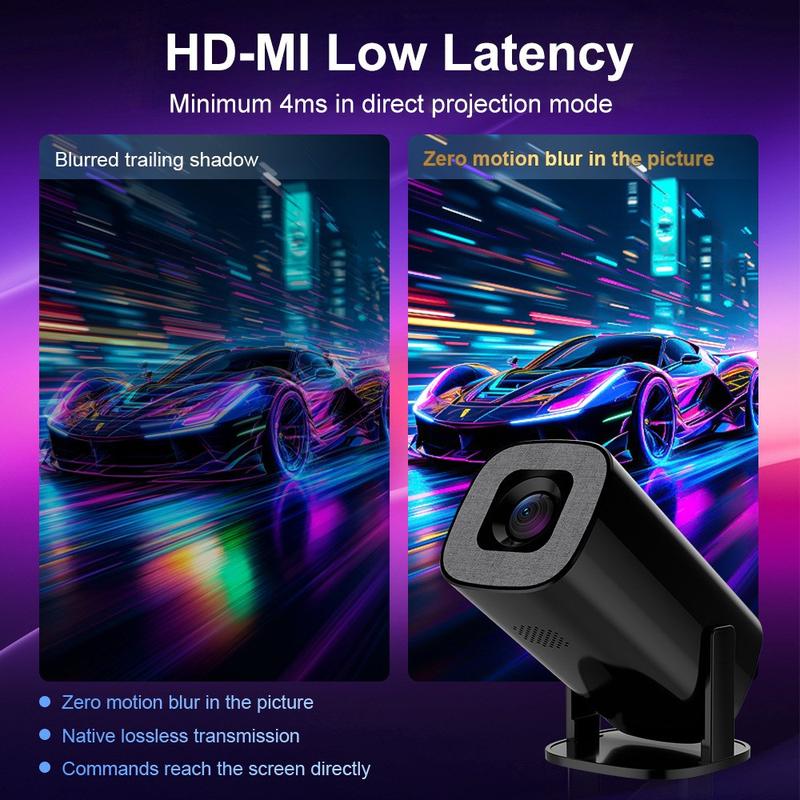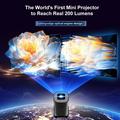 Bring big-screen entertainment anywhere with the V1 smart video projector-an ultra-compact home theater projector powered by Android 14. Stream apps directly on the projector, mirror your phone wirelessly, or plug in a console via HD input for movie nights, casual gaming, and presentations. The 200 ANSI brightness is ideal for dim rooms and evening viewing, while the 180 adjustable projection angle makes it easy to project onto a wall or even the ceiling from a bedside table.